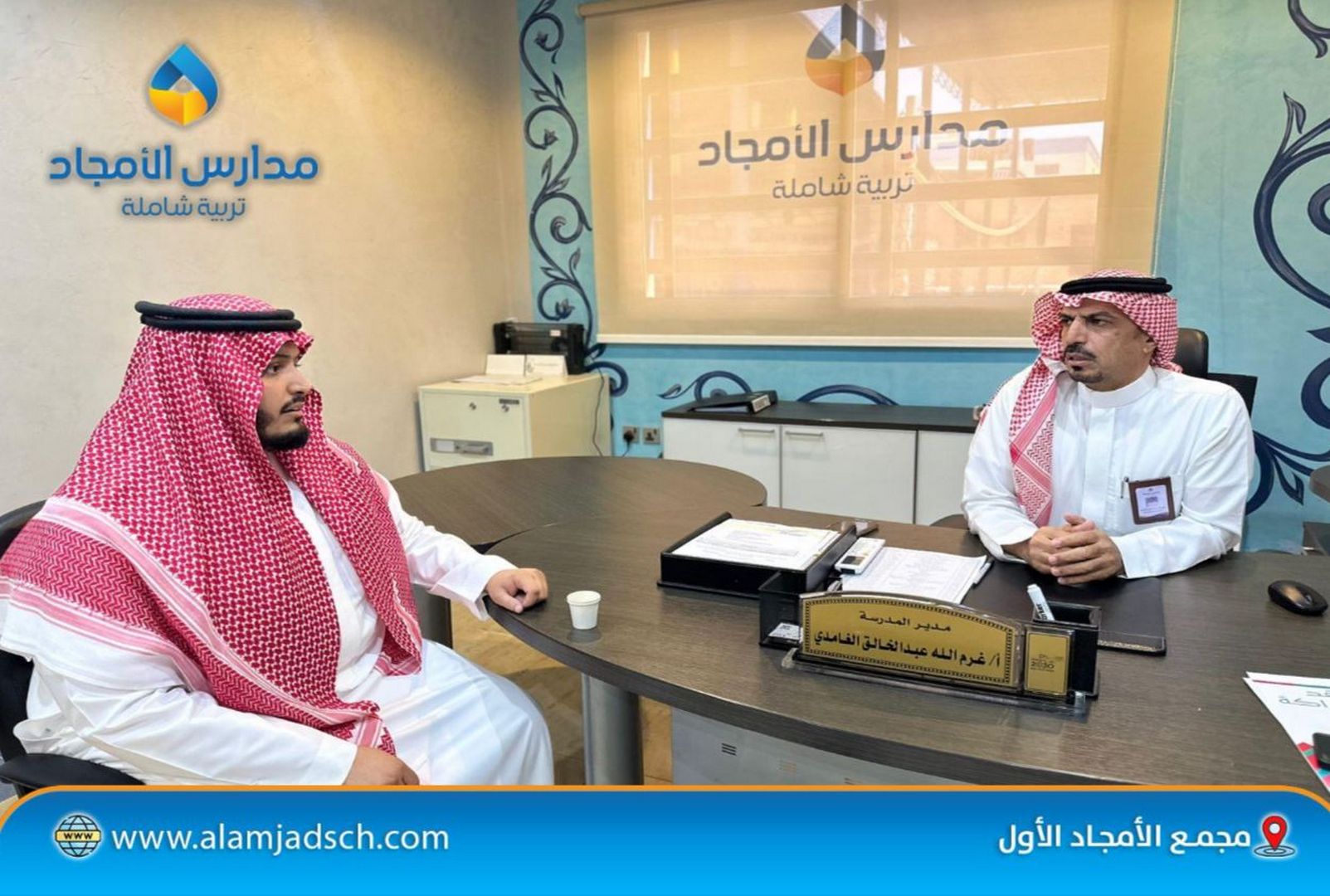 <p><strong>في إطار التعاون البنّاء بين مدارس الأمجاد المتوسطة وجمعية إجلال التعليمية،</strong><br /> تم – بفضل الله – توقيع <strong>اتفاقية شراكة</strong> لتنفيذ برنامج <strong>"100 سفير للتعريف برب العالمين"</strong>،<br /> الذي يهدف إلى <strong>ترسيخ المعرفة بالله تعالى وتعزيز القيم الإيمانية في نفوس الطلاب</strong>،<br /> من خلال <strong>مبادرات نوعية وأساليب تعليمية مبتكرة</strong> تسهم في بناء الوعي الإيماني وتعميق الانتماء القيمي لدى النشء.</p>
